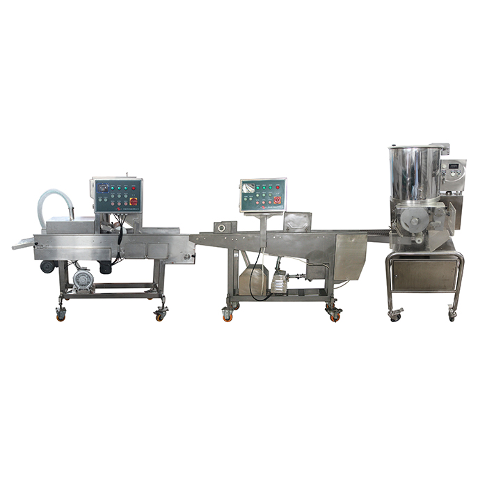 【小型肉餅生產(chǎn)線操作方便,自動化程度高。