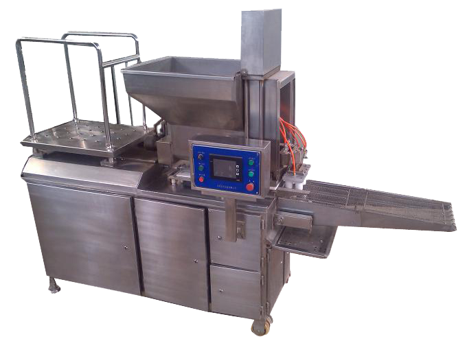 全自動(dòng)肉排成型機(jī)將混合好的原料通過螺桿送料到料箱,通過模板可以加工成卡通形、魚形、數(shù)字形、三角形、長方形、圓形、心形及特殊形狀的產(chǎn)品,自動(dòng)完成原料的充填,成型、輸出等工序。成形模板更換方便產(chǎn)量高,質(zhì)量穩(wěn)定。牛排成型機(jī)與上粉機(jī)、上漿機(jī)、上面包屑機(jī)、油炸機(jī)、蒸煮機(jī)、速凍機(jī)、包裝機(jī)連成熟食全自動(dòng)生產(chǎn)線,生產(chǎn)漢堡肉餅、雞塊、雞柳、魚排.牛排等產(chǎn)品。雞排成型機(jī)與烘烤箱組裝成生產(chǎn)線做寵物食品。