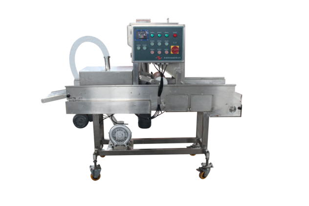 上屑機(jī)與上漿機(jī)配合使用,裹面包屑機(jī)可單獨(dú)使用。上面包屑機(jī)適合于中等以上干面包糠顆粒,全自動(dòng)裹康機(jī)對市場上流行的漢堡肉餅、麥樂雞塊、魚香漢堡肉餅、土豆餅、南瓜餅、肉串等產(chǎn)品進(jìn)行上面包屑處理,是快餐店、配送中心、食品工廠理想的上面包屑設(shè)備。